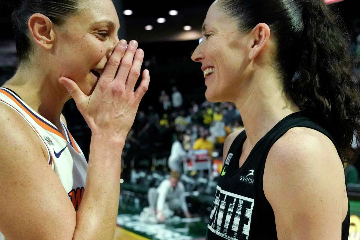 Former UConn basketball player Sue Bird interviewed on '60 ... Seattle Storm's Sue Bird dribbles upcourt against the Phoenix Mercury in the first half of the second round of the WNBA basketball playoffs Sunday, Sept. 26, 2021, in Everett, Wash. (AP Photo ...