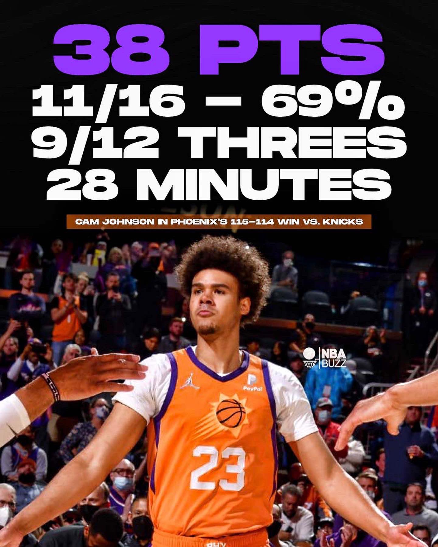 Watch: Cam Johnson hits spectacular buzzer-beater 3 to cap off his... Cam Johnson was the Phoenix Suns' undisputed hero on Friday night. The 11th overall pick from the 2019 Draft hit a three-pointer right at the buzzer to give the Suns a one-point victory against the visiting New York Knicks. He scored a career-high 38 points as the Suns won 115-114 at Footprint Center.
