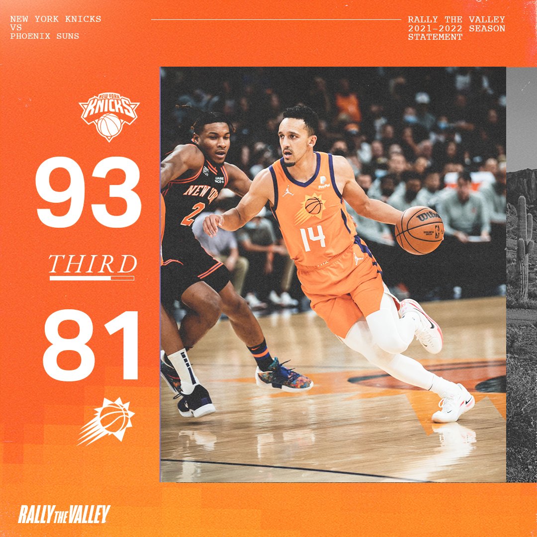 Knicks vs. Suns: Play-by-play, highlights and reactions ... 2 days ago · The New York Knicks (25-38) play against the Phoenix Suns (12-12) at Footprint Center . Game Time: 10:00 PM EST on Friday March 4, 2022. New York Knicks 114, Phoenix Suns 115 (Final) New York Knicks vs Phoenix Suns May 7, 2021 Game Summary ... The Knicks are trying to fend off the Hawks, Heat and Celtics for the No. 4 seed in the Eastern Conference. The Suns led by 13 at one point in the first but the Knicks rallied to take a 33-30 lead...