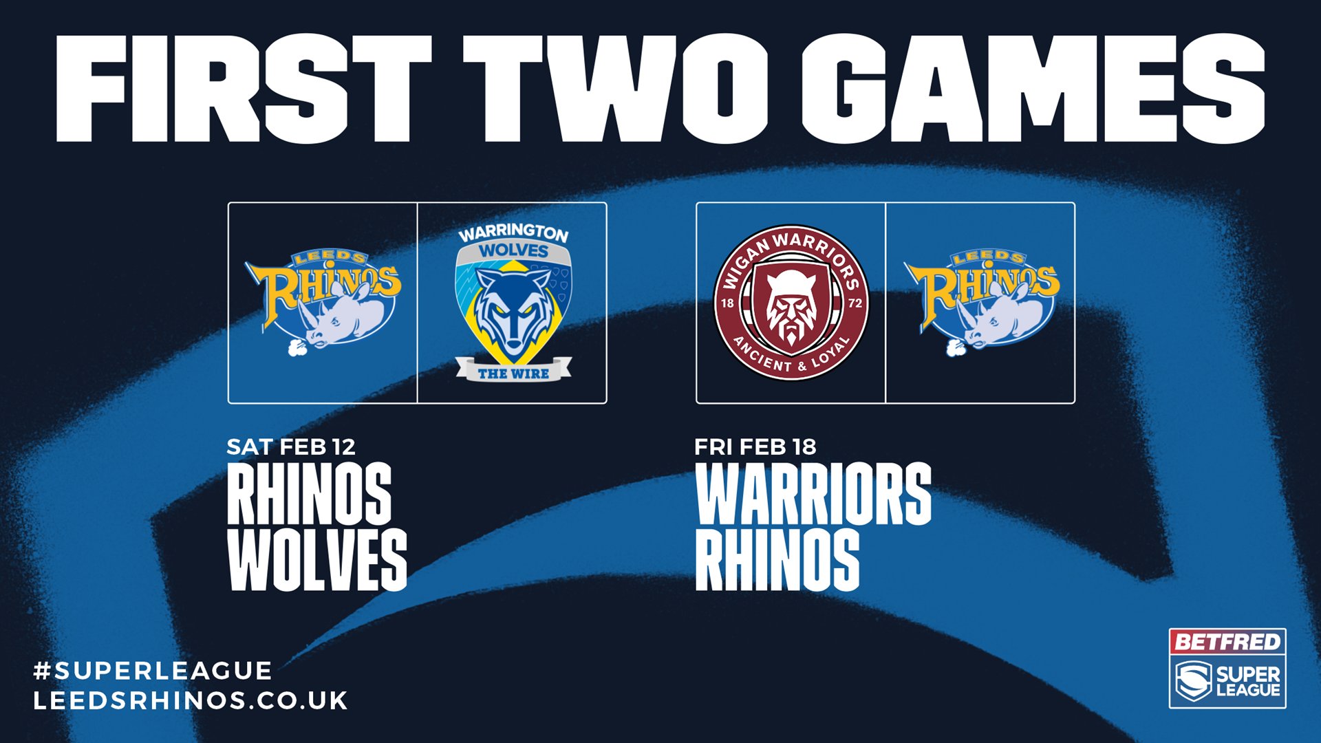 Leeds rhinos fixtures 2022. Fixtures & Results - Salford Red Devils MAY 2022 SALFORD RED DEVILS LEEDS RHINOS FRIDAY 2OTH MAY ROUND 13 (H) AJ BELL STADIUM (KO 8PM) SALFORD RED DEVILS CASTLEFORD TIGERS SUNDAY 5 JUNE Round 14 (A) Sewell Group Craven Park (KO 3PM) JUNE 2022 HULL KINGSTON ROVERS SALFORD RED DEVILS SUNDAY 12 JUNE ROUND 15 (H) AJ BELL STADIUM (KO 3PM) SALFORD RED DEVILS WIGAN WARRIORS SUNDAY 26 JUNE Leeds Rhinos News - NRL 2022 - Zero Tackle Dragons veteran Trent Merrin announces retirement, effective immediately. Mitch Keating - April 21, 2021 2. Leeds Rhinos. Wigan's 2022 fixtures - Wigan Warriors Wigan Warriors' 2022 Betfred Super League fixtures have been released. On the back of the announcement that Betfred Super League will be broadcast on both Sky Sports and Channel 4 in 2022, Super League have confirmed the full fixture schedule for the upcoming season. ... Round 2: Leeds Rhinos, Friday 18th February, 8pm, DW Stadium, Live on Sky ; Leeds Rhinos begin 2022 season at home to Warrington ... Leeds Rhinos will begin their 2022 season at home to Warrington Wolves on Saturday, February 12, in the first Betfred Super League game broadcast live on free-to-air television.
